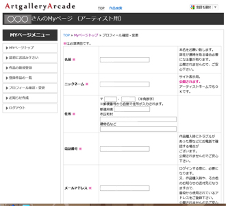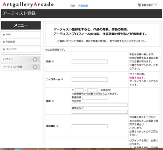 作品を登録するにはまず「アーティスト登録」が必要になります。