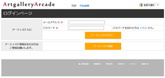 登録時のメールアドレスとパスワードを 入力します。 最後に「アーティストログイン」を クリックして下さい。