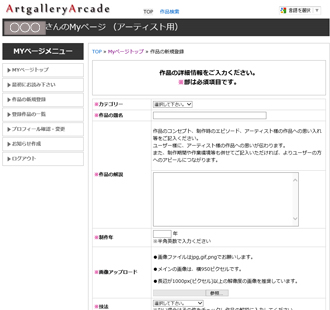 5. | 作品を登録しましょう。(2)(アーティストログインします。) |