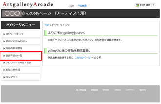 左サイドメニューの「登録作品の一覧」をクリックして下さい。